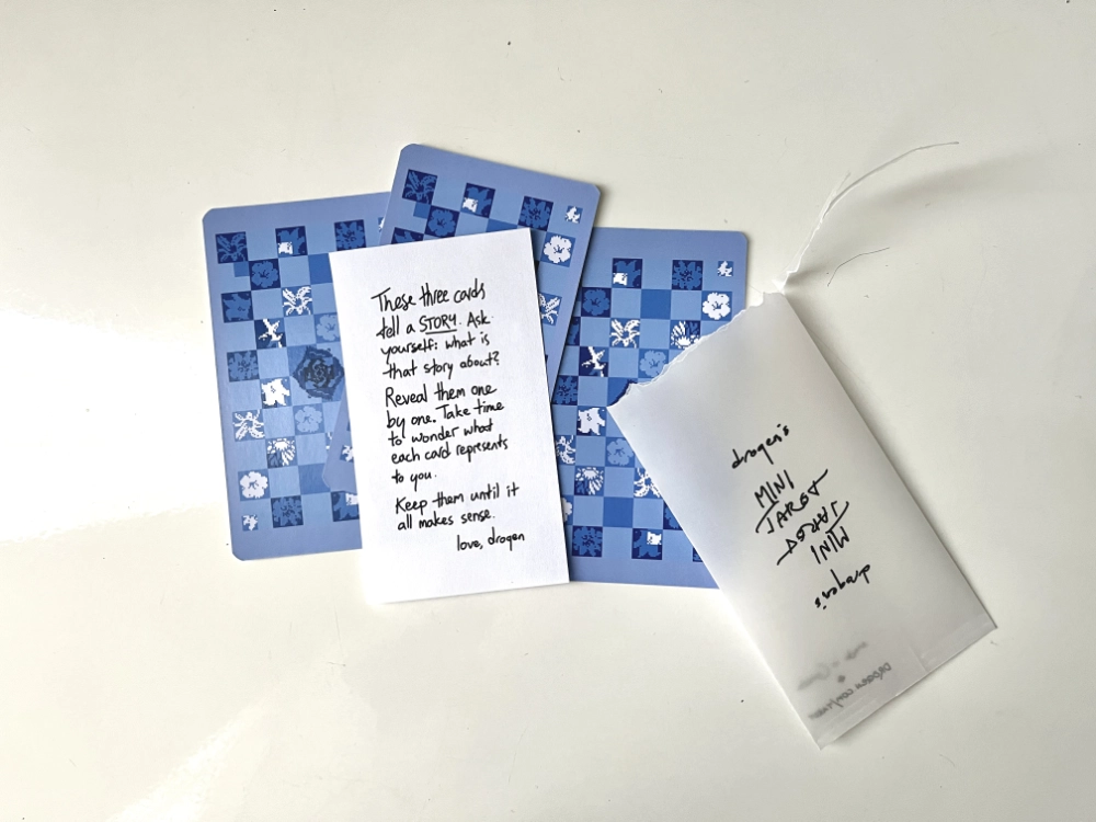 pictured above is my new mini tarot reading, just a little three-card blind box experience. and if you’ve been waiting for a reprint of the deck, there’s a second run of my tarot deck too! last time it sold out in a week, so i hope this one lasts a bit longer than that…